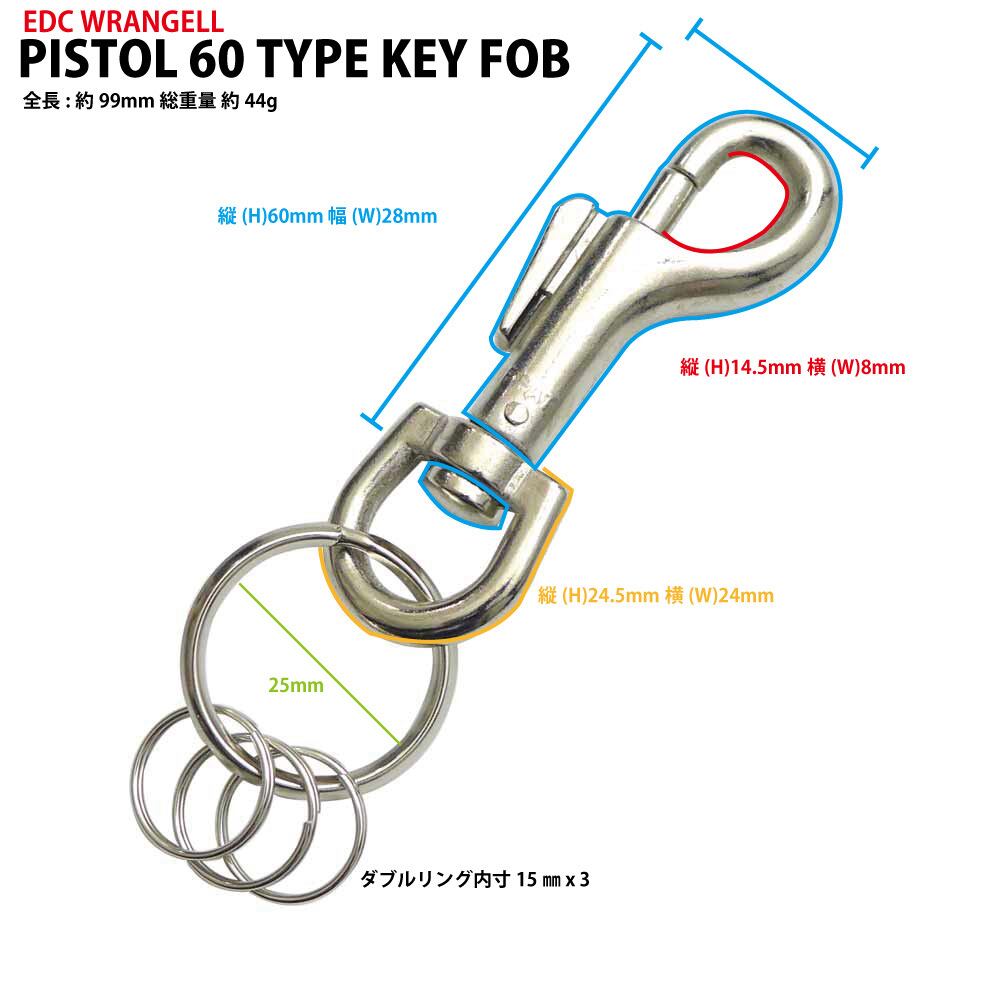 40mmのピストルカンをキーホルダータイプにデザインした15mmスチールリング3個付属します。シンプルなマット風なニッケルメッキ型キーホルダーです。